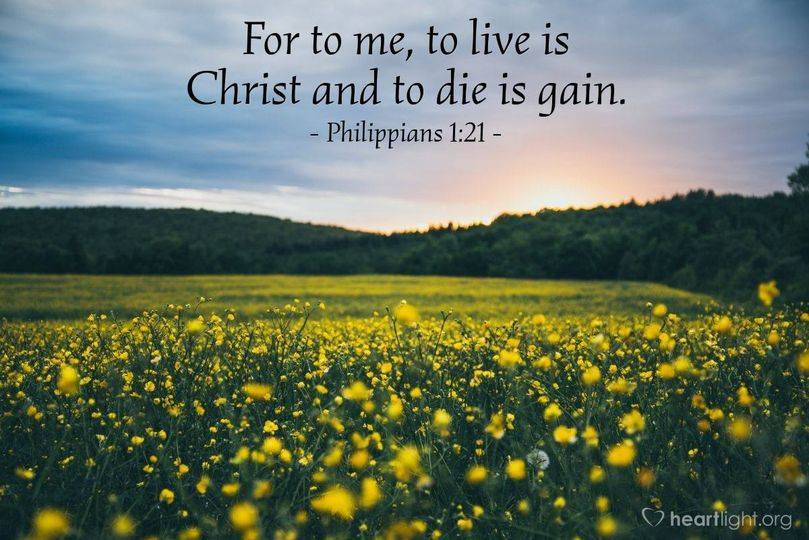 “For to me, to live is Christ and to die is gain. But if I am to live on in the flesh, this will mean fruitful labor for me; and I do not know which to choose. But I am hard-pressed from both directions, having the desire to depart and be with Christ, for that is very much better; yet to remain on in the flesh is more necessary for your sake. Convinced of this, I know that I will remain and continue with you all for your progress and joy in the faith, so that your proud confidence in me may abound in Christ Jesus through my coming to you again.” (Philippians 1:21-26)