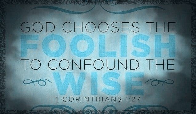 “But God chose the foolish things of the world to shame the wise; God chose the weak things of the world to shame the strong. God chose the lowly things of this world and the despised things—and the things that are not—to nullify the things that are, so that no one may boast before him” (1 Cor 1:27-29)